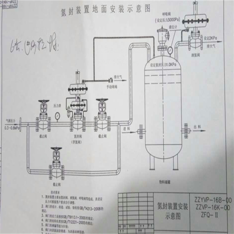 1、ZZYVP自力式氮封阀装置工作原理 用途和适用范围 氮封阀是一种无需外来能源而只依靠调介质自身的压力变化进行自动调节压力的节能型产品.具有测量、执行、控制的综合功能。广泛适用于石油、化工、冶金、轻工等工业部门及城市供热、供嗳系统。本产品可用于非腐蚀性(最高温度350℃)的液体、气体和蒸汽等介质的压力控制装置。氮封阀无需外加能源,利用被调介质自身能量为动力源。 自动控制阀门介质流量,使阀后压力保持恒定的压力稳定装置。