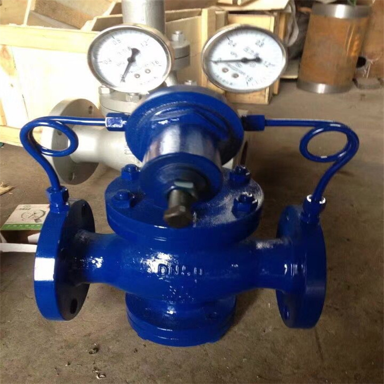 1、减压阀只有在计算减压比β时所用压力为压力,其他压力均为相对压力。 2、减压阀的型号与规格,应概据压差、流量、介质特性等因素计算确定,不应直接按上游或下游管道的管径确定。 3、活塞式减压阀减压后的压力不应小于0.1MPa,如需减至0.07MPa以下,应再设波纹管式减压阀或用截止阀进行二次减压。 4、当减压阀前后压力比大于5-7时,应串连装两个,如阀后蒸汽压力P2较小,通常宜采用两级减压,以使减压阀工作时噪声和振动小,而且安全可靠。在热负荷波动频繁而剧烈时,为使*级减压阀工作稳定,、二级减压阀之间的距离应尽量拉开些。 5、减压阀有方向性,安装时注意不要把方向装反,并应垂直安装在水平管道上,对于带有均压管的减压阀,均压管应连接在低压管道侧。 6、减压阀安装律采用法兰截止阀,低压部分可采用低压截止阀。 7、旁通管是安装减压阀的个组成部,当减压阀发生故障需要检修时,可关闭减压阀两侧的截止阀,暂时通过旁通管进行供汽。 8、减压阀两侧应分别装有高低压压力表,阀后设安全阀。 9、设计时除对型号及规格进行选择外,还应说明减压前后压差值和安全阀的开启压力,以便生产厂家合理配备弹簧。 10、除压力表、安全阀、减压阀外,其他管件均应保温。