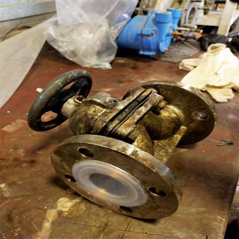 五、化工衬氟塑料直通隔膜阀技术规范选用与维护 在选用衬氟隔膜阀时,需要根据介质的特性(如腐蚀性、温度、压力等)以及阀门的尺寸和连接方式等因素进行综合考虑。同时,在使用过程中也需要注意以下几点: 定期检查阀门的密封性能和操作机构是否正常工作。 及时更换损坏的隔膜和阀瓣等部件,以确保阀门的长期稳定运行。 避免在超出阀门设计范围的条件下使用,以免损坏阀门或影响使用效果。