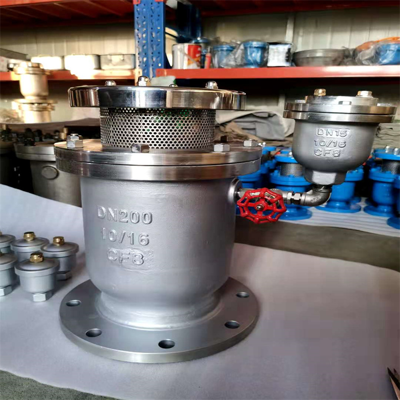 CARX复合式排气阀的用途:CARX复合式排气阀用于供热、采暖及空气调节管网系统,尤其适用于逐年并网的系统,并网后对系统平衡重作一次调试,即使管路重新实现水利平衡,并具有排污,流量测量和截止功能,介质应从较短的那端法兰进入。当水流入管道时,塞头会停留在定位架的下部,进行大量排气。待空气排尽后,水进入阀门内,使球体浮起并推动塞头封闭,实现连续排气。在管道正常运行过程中,会自然产生少量气体聚集在管道上部。当气体聚集到一定程度时,阀门内水位会下降,浮球随之下降,气体通过小孔排出。如遇停电或停泵导致管内水流空,管道会产生负压,此时浮球会顺水下降,打开小孔并带动大孔大量进气,确保管道安全。