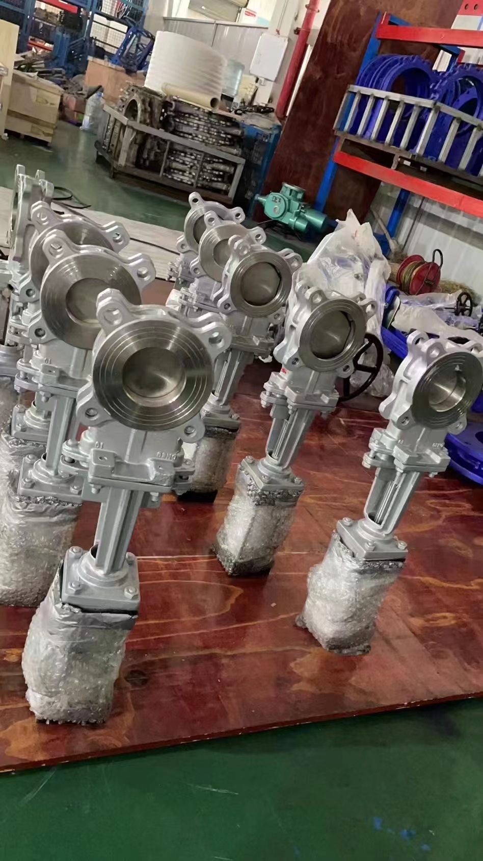 PZ673H气动刀型闸阀选型分析 气动对夹刀闸阀吸取了国际外先进技术和结构优点,弥补了刀闸阀在使用中存在的不足,是一种具有轻型、结构简单小巧、密封性能可靠、使用寿命长、具有切断介质等优点,其密封原理是通过闸板在关闭到底时,闸板斜切面碰到阀体上的锲块使得闸板紧靠密封面起到密封效果,并且闸板底部的斜切面具有切断介质的功能,使得阀门不易受介质的堵塞卡阻。其结构可以做成硬密封、软密封,可以根据客户对密封要求选型 。 对夹式刀型闸阀具有排渣功能的的闸阀。PZ673H气动刀型闸阀采用全圆形的通道设计,在刀板上端安装有聚四氟乙烯、刮泥器,聚胶脂或含Ni耐磨铸铁制成的耐磨折边锥体安装在刀闸阀的进口端,可在阀体四周设置多个冲洗口。刀板底端加工成刀刃,光洁度高,保证了良好的密封性。 PZ673H气动刀型闸阀广泛用于化工、煤碳、制糖、污水、造纸、飞灰处理、散状物料输送、食品饮料工业的使用要求及工作条件苛放慢的环境条件下等领域,是一种理想的密封阀门。刀型闸阀特别适合于造纸行业在管道上作调节和节流使用。主要由左、右阀体、U型密封圈、闸板、钢螺母、阀杆、支架、气缸等件组成,阀门启闭靠气缸动作来完成。